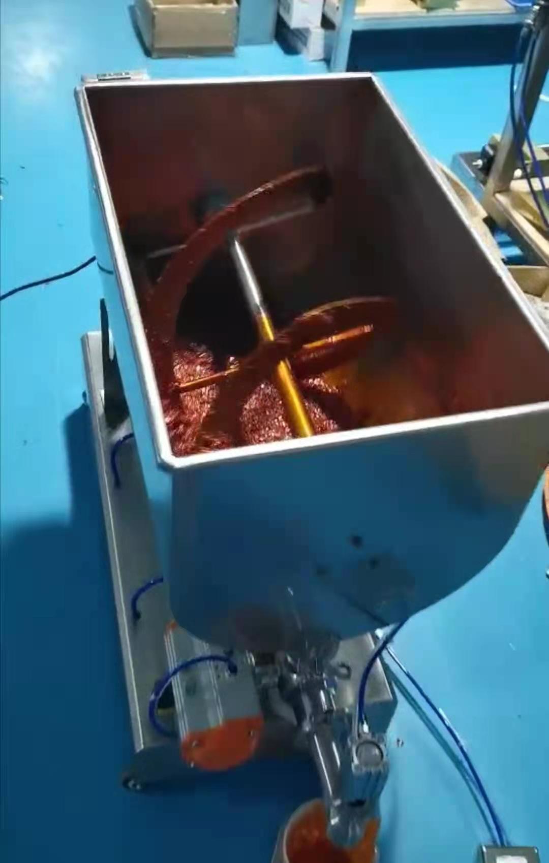 出口韓國(guó)的一臺(tái)半自動(dòng)攪拌灌裝機(jī),用于攪拌灌裝魚露和各類海鮮醬料。